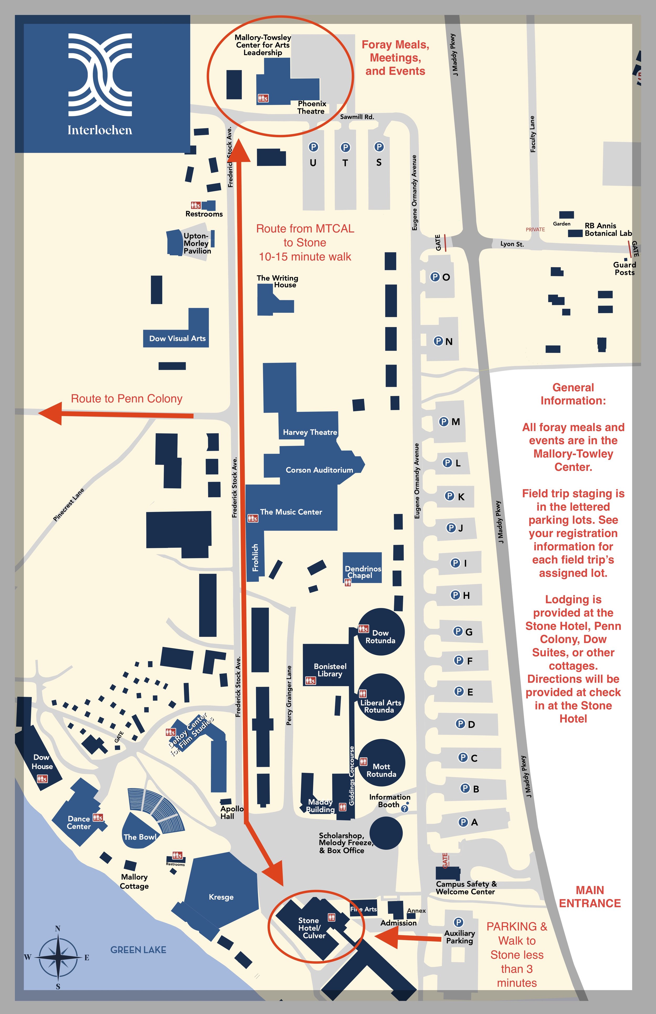 Lodging, meals, and event space will be on the beautiful ICA Campus on Green Lake. Registration will open sometime in March, and the format will be similar to past Grand Forays. We hope to use a new system that tracks field trip capacity, so you know what trip you will be on at the time of registration! ICA has 50 rooms held for us (June 1st check-in and June 4th check-out): hotel rooms are $79/night, Penn Colony rooms are $99/night, Dow Artist Suites are $99/night and small cottages are 119/night. You can find contact information and pics on their web site: https://www.interlochen.org/stone-hotel-and-cottages. Use Group Code MBS26 for rates.